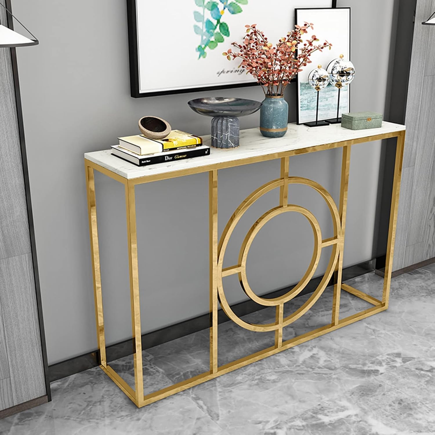 A sleek and modern console table featuring a gold-finished frame and a premium top. Stylish yet functional, it's perfect for entryways, living rooms, or porches—an elegant display piece to elevate your home DECOR.